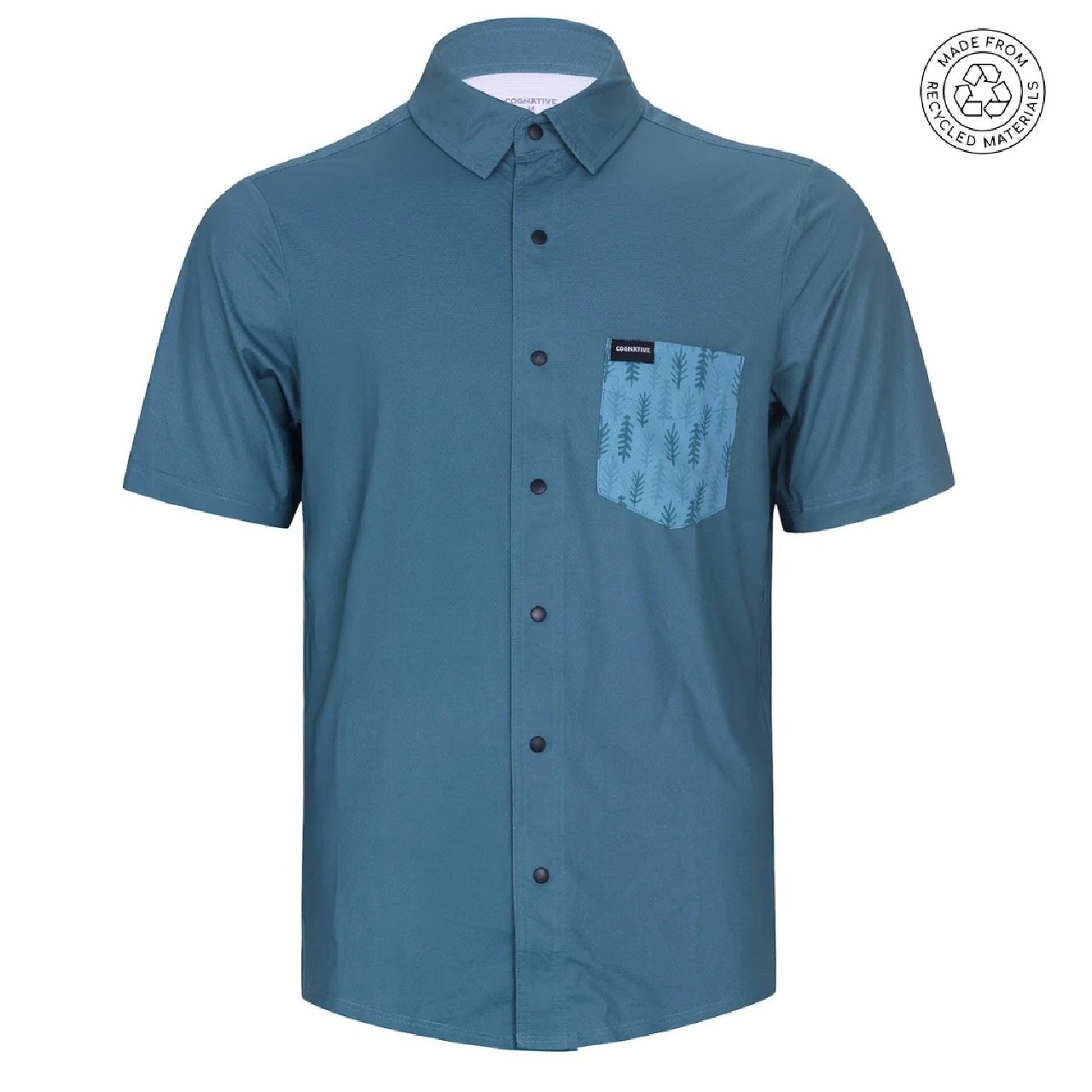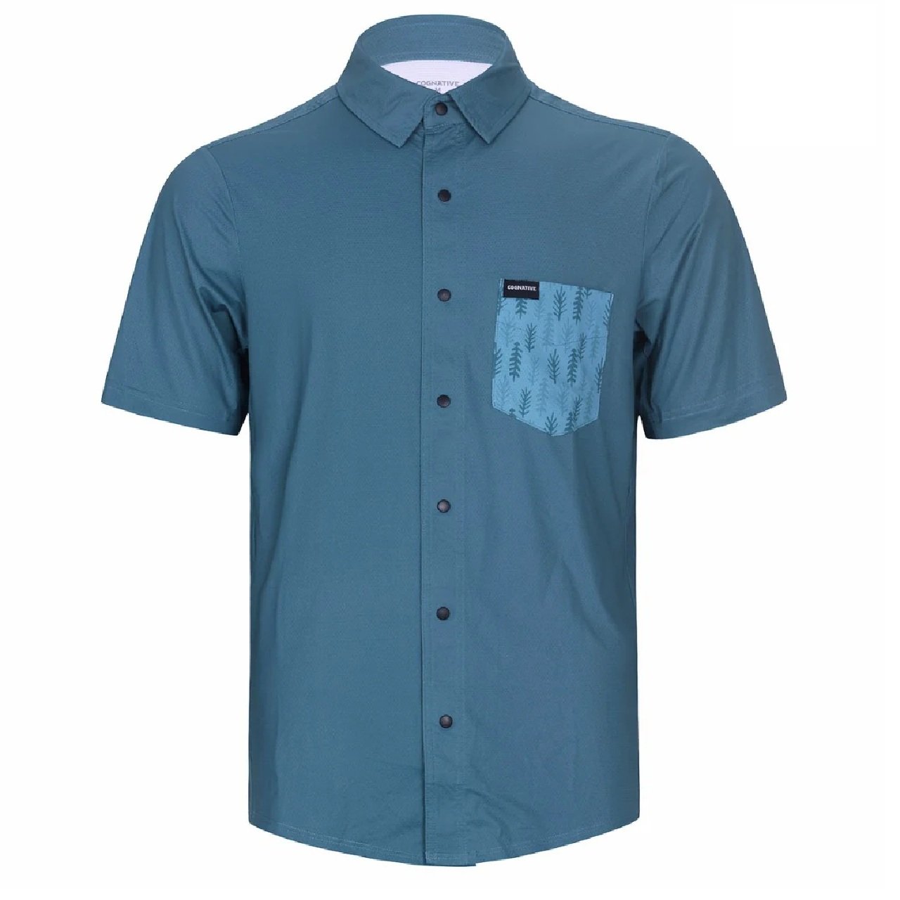 The Ultimate Blend of Style and Performance: The Catalyst Mountain Bike Button-Down Shirt! It's a button-up shirt with a twist—it's actually a high-performance jersey in disguise, combining classic charm with functionality. Built in our ultra stretchy, lightest weight and most breathable fabric and packed with features like a front stash pocket, a built-in lens wipe, and strong reinforced snaps