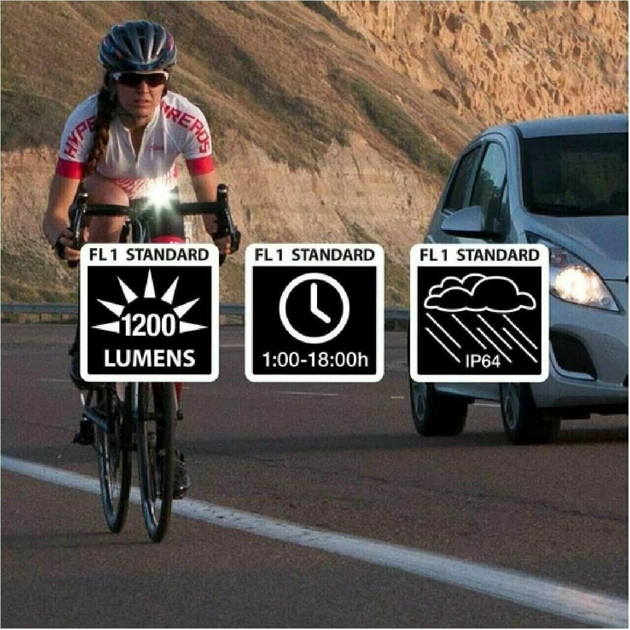 - FL1 Standard IP64, water resistant. Secure on and off-road capable handlebar clamp mount, fits up to 35mm handlebars