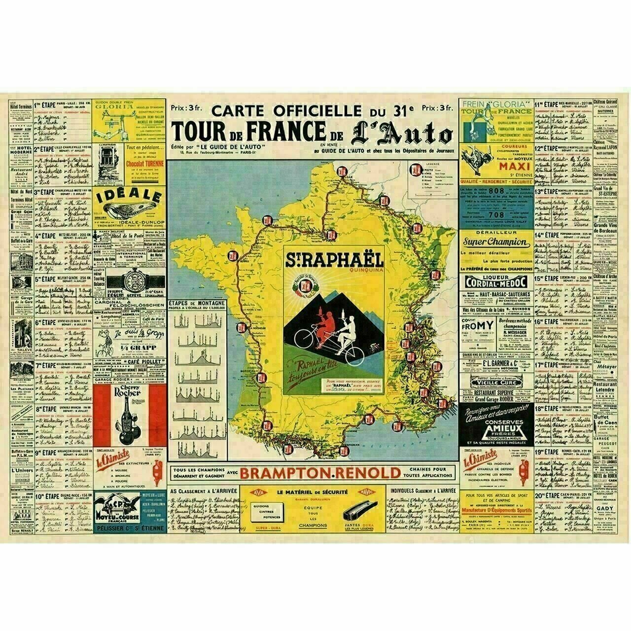 Cycling Poster 1937 Tour de France (TDF) Route Map Poster 42" x 30"