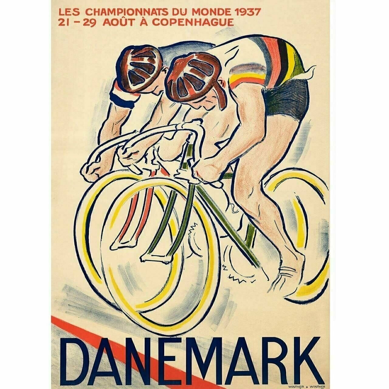 Cycling Poster 1937 World Championships Denmark Bicycle racing Poster vintage