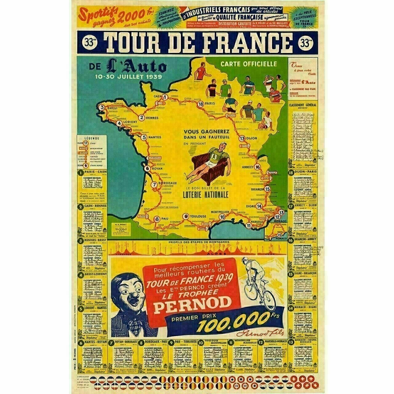 1939 Tour de France Map Poster