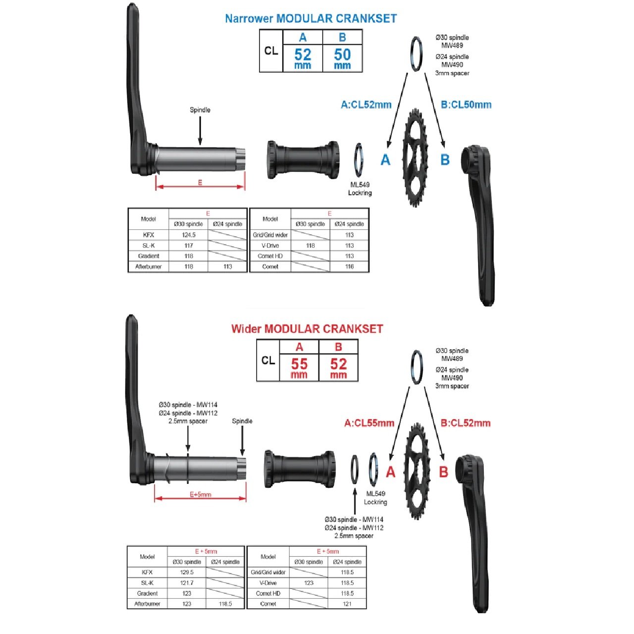 NOTE: *Asterisks in dropdown indicate the position of installed chainring. Modular Crank Lock Ring Tool (230-0023000520) can be used to adjust the chainring position.