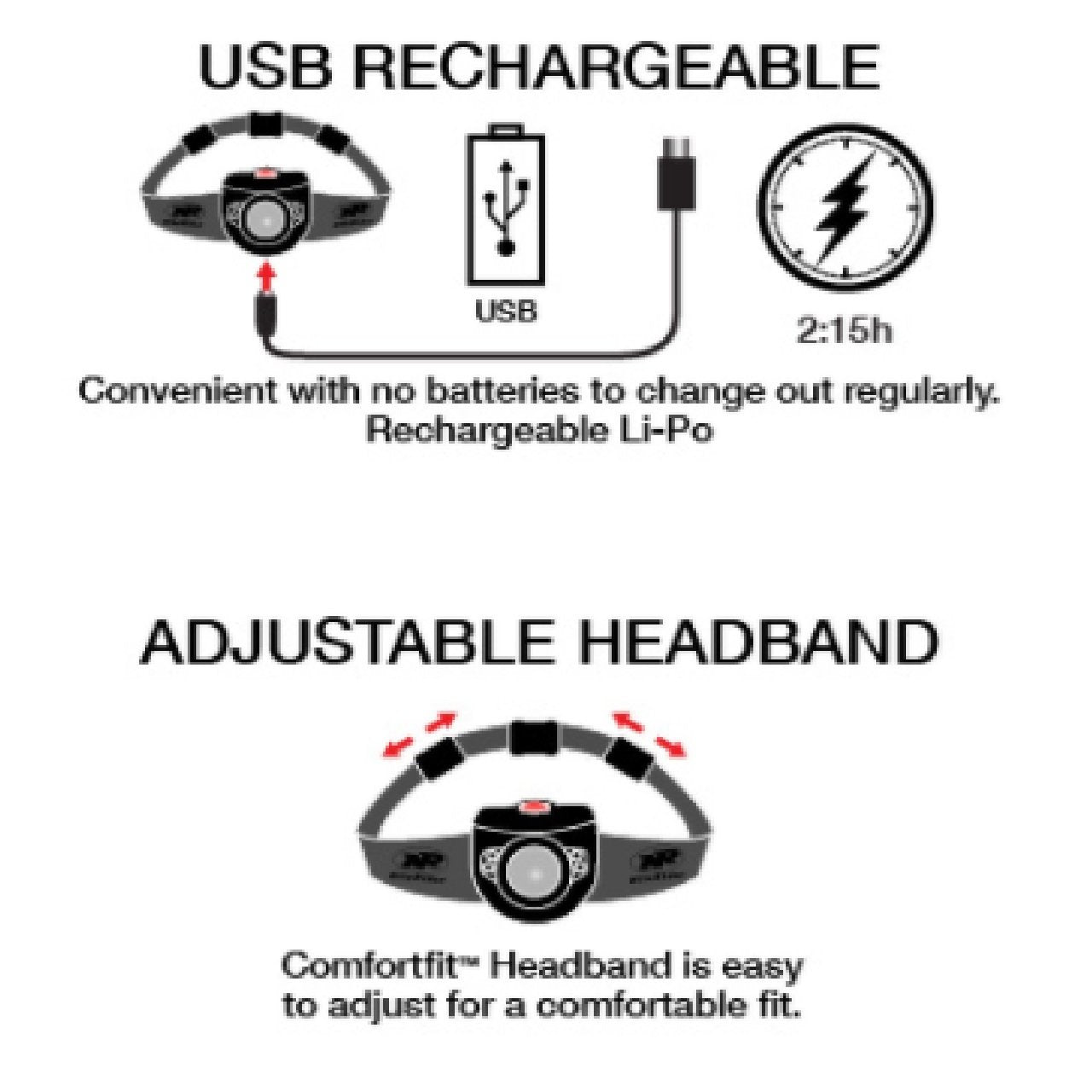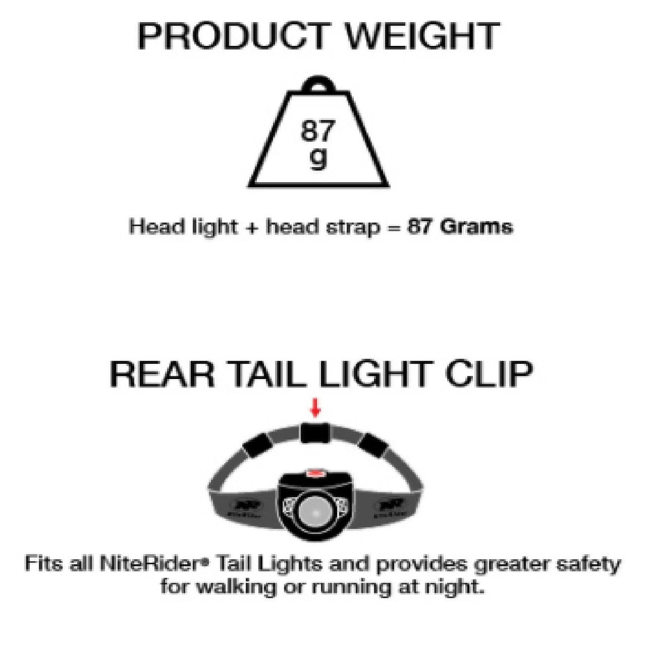 - Comfortfit™ Headstrap with Rear Tail Light Clip