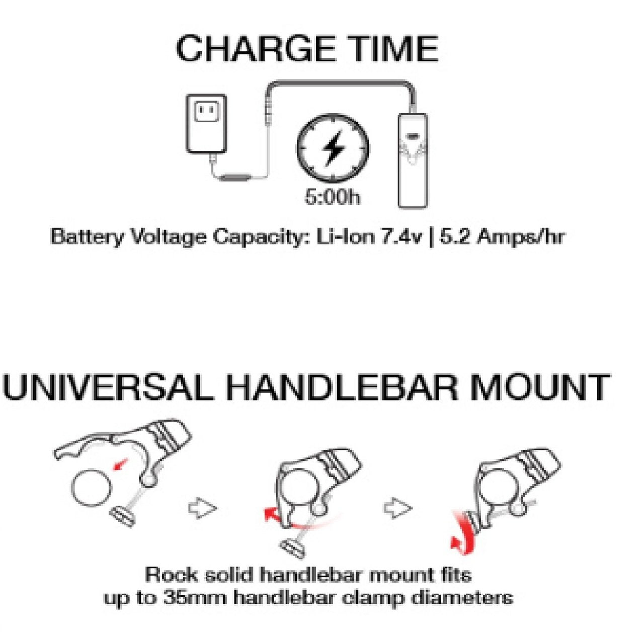 The Pro 2200 boasts one of the category’s best power-to-weight ratios. With 2200 lumens of light output, using 3 CREE™ LEDs- set into a NiteRider custom reflector, guarantees to set the darkest bike trail ablaze. It features an accurate eight-step fuel gauge, keeping the rider informed of battery levels at all times. These attributes make the Pro 2200 the “go to” light among the world’s top athletes and enthusiasts alike.