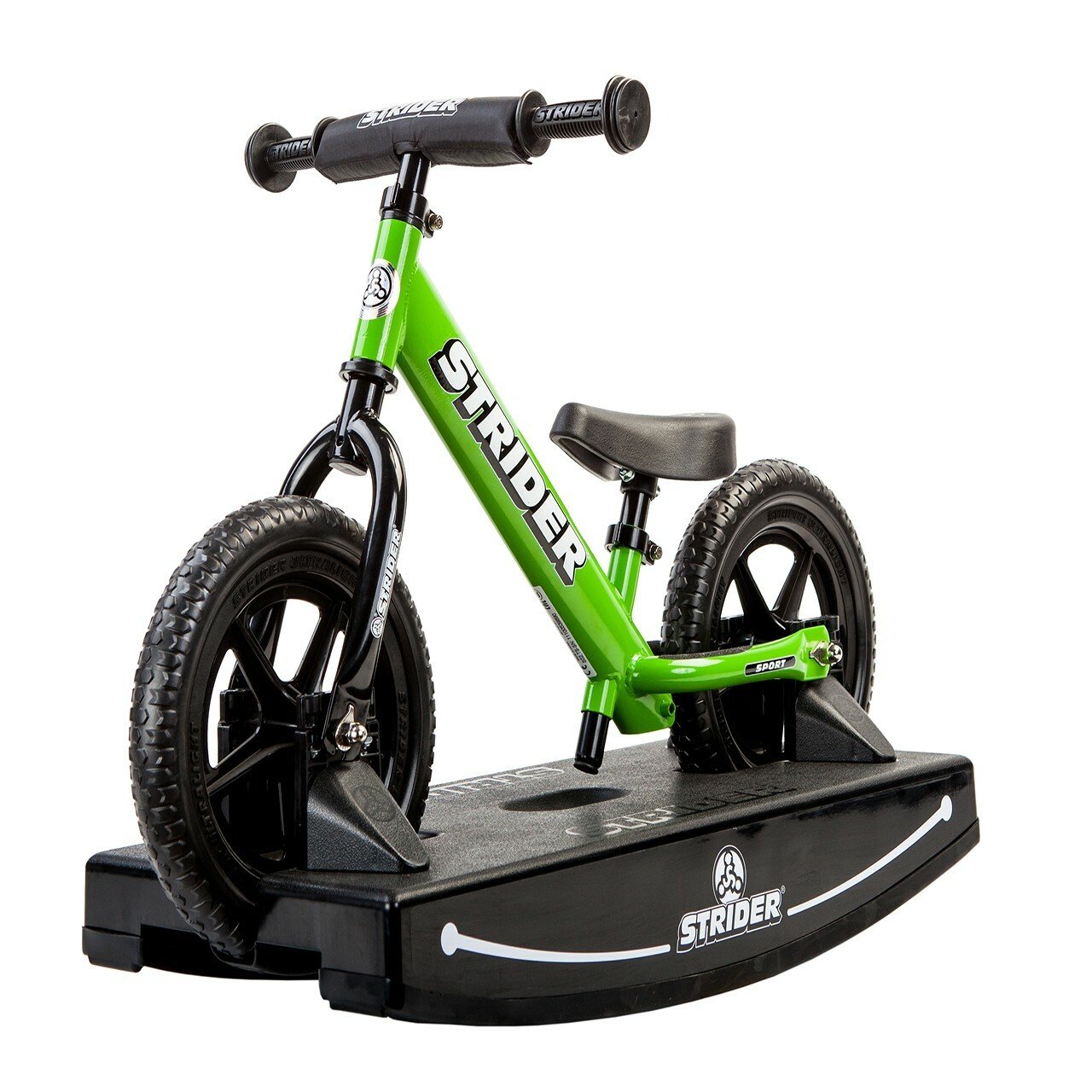 - BUILT FOR PLAY - The Strider Baby Bundle helps your little bundle of biscuits bond with their very first bike before they ever take it to the rough and tumble cul-de-sac. The rocking base securely holds the Strider Sport in place as your baby literally rocks out.